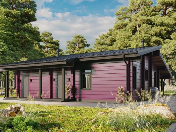 - رنگبندی منحصربهفرد: استفاده از رنگ بنفش ملایم در ترکیب با جزئیات مشکی، ویلا را به یک نقطه جذاب در محیط اطراف تبدیل کرده است.
